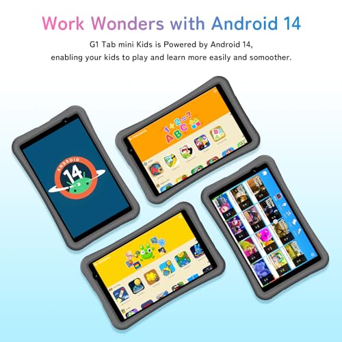 - Latest Android 14 & Super Fast Wi-Fi 6: G1 Tab Mini Kids is powered by latest Android 14, enabling your kids to play and learn more easily and smoother. This kids tablet with rapid Wi-Fi 6 connectivity, your kids can stay linked at home, work, or school. Whether downloading homework streaming videos, online learning, or game playing every thing happens in a flash.