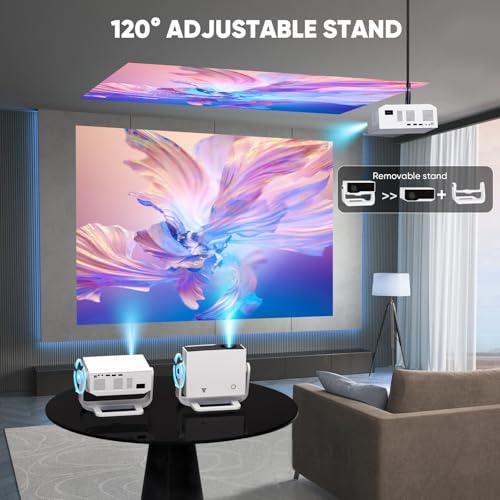 - 【120° Adjustable Stand – Flexible & Precise Projection Angles】Includes a versatile 120° adjustable stand that requires no tools. Easily project onto walls, tents, or ceilings from any angle—perfect for home, backyard, or outdoor adventures