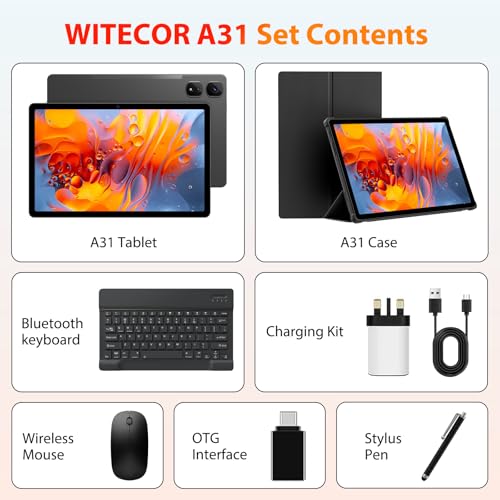 - 【11-Inch 2K FHD InCell Display】Experience vivid, lifelike visuals on the WITECOR A31 Tablet’s 11-inch 2000×1200 resolution screen. Perfect for movies, gaming, or browsing, the 2K FHD display delivers sharp details and vibrant colors for an immersive viewing experience.