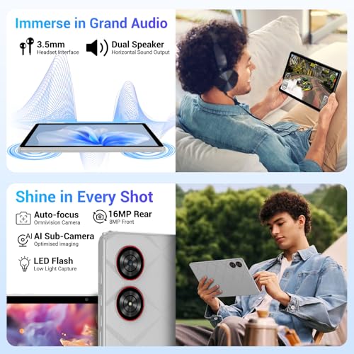 - ⚡【Long-Lasting 8580mAh Battery & Fast Connectivity】Stay powered for days with the 8580mAh battery. Features dual-band WiFi (5G/2.4GHz), Bluetooth 5.0, GPS/GLONASS/Galileo navigation, and a 3.5mm headphone jack for versatile use.