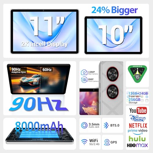- 【11-inch FHD IPS Display with 90Hz Refresh Rate】Enjoy vibrant, crisp visuals on the 11-inch 2K screen (2000×1200 resolution) with a 16:10 aspect ratio and 16.7 million colors. The 90Hz display ensures smooth scrolling, while low blue light mode reduces eye strain.