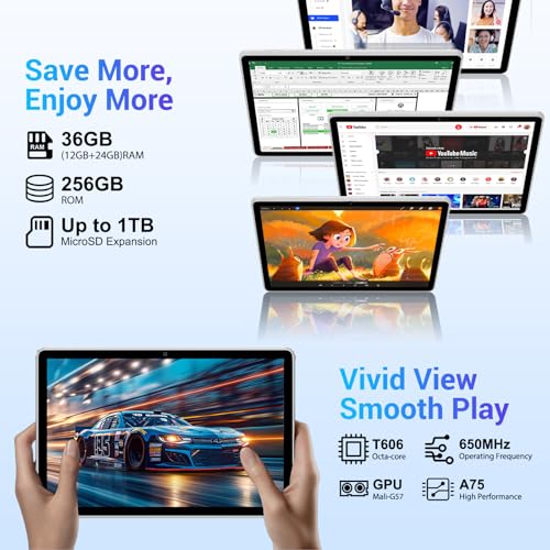 - 【Latest Android 15 OS & Powerful Performance】Experience smooth multitasking and gaming with the Unisoc T606 Octa-Core processor and Mali-G57 GPU. The Android 15 tablet offers enhanced privacy controls, split-screen mode, and a 90Hz refresh rate for ultra-fluid visuals.