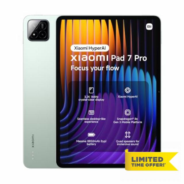 Xiaomi Pad 7 Pro, 11.2 Inch Tablet, 12+512GB, Green, 8850mAh battery, 67W HyperCharge, HyperAI,2 year warranty(No power adapter included)