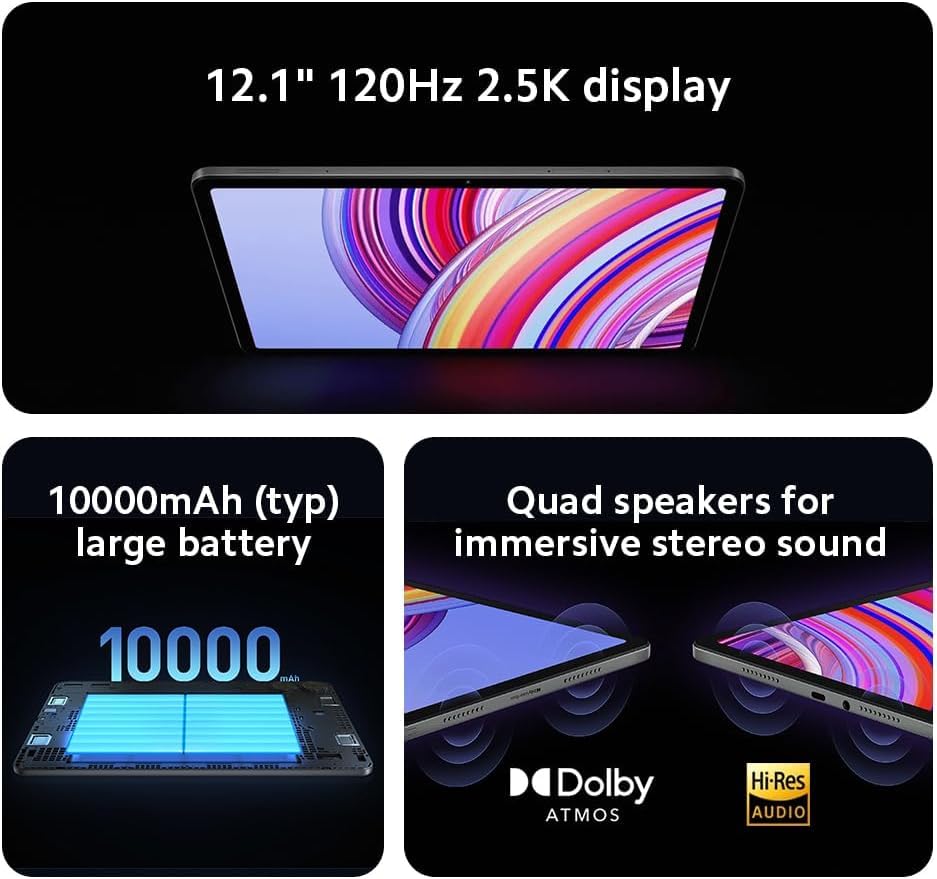 Xiaomi Redmi Pad Pro 6GB+128GB Graphite Gray, Snapdragon® 7s Gen, HyperOS,12.1″ 120Hz 2.5K Eye Care Display,10000mAh (typ) Large Battery, 33W Fast Charging(UK Version+2 Year Warranty)