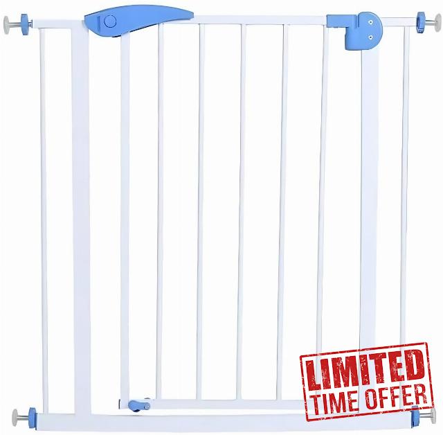 Zanbeel Baby Safety Gate Pet Dog Barrier Auto Close Stair Gate Pressure Fit Child Gate for Stairs & Doorways Easy Install Toddler & Pet Safety Gate (White,Blue 70-75 cm)