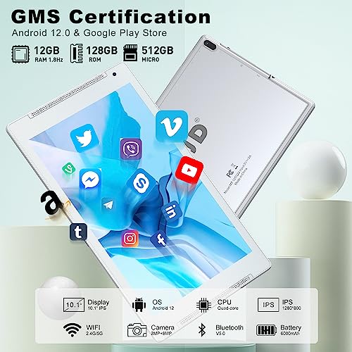 - 【Android 12 & GMS Certification】TJD Tablet Equipped a Powerful CPU with Android 12.0 System.Delivering quick app launches, smooth games and videos, and great overall performance.The tablet 10.1 inch has been updated to android 12.0 go version, the processing performance of the 12.0 system has been significantly improved, you can download apps like Tiktok Facebook, Twitter, and Instagram.