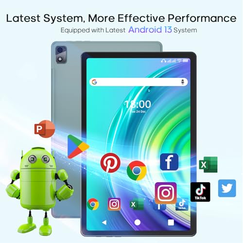 - 【11 inch Android 13 Tablet】This smart android tablet based on the latest Android 13 system, and supports horizontal screen view, multi window operation, humanized reading mode, eye protection mode, dark color mode and other detailed functions to make the tablet experience better. With Bluetooth 5.0 and 2.4/5GHz WiFi support, you'll enjoy seamless high-speed wireless connectivity for calls, browsing, and streaming. Perfect for work and communication.(Tabllet Case ASIN:B0DSFS12Q7)