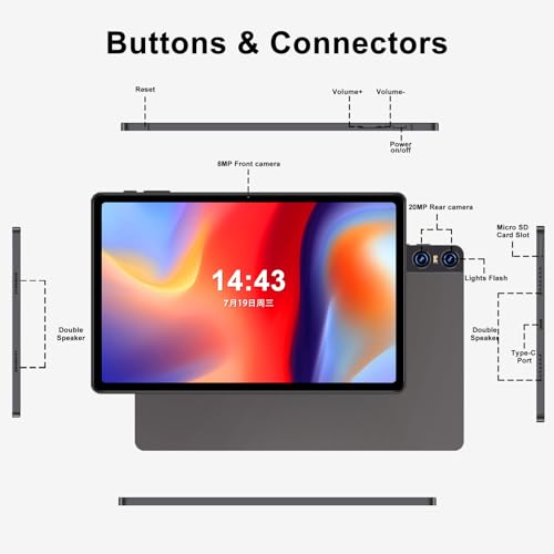 2025 Tablet 11 Inch Android 13 Screen 2K Tablet Octa-Core 2.0 GHz,16GB RAM+256GB ROM+TF 1TB /2000 * 1200 Pixel/8MP+20MP+2MP Macro/10000 mAh/5G WiFi Metal Cover Brow