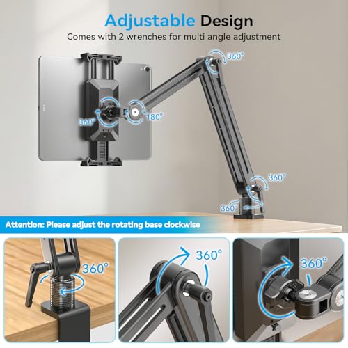 - Flexible Adjustment: Featuring two side wrenches, this ipad arm mount allows multi-angle and height adjustments, the tablet mount can enhancing daily work efficiency and usage comfort