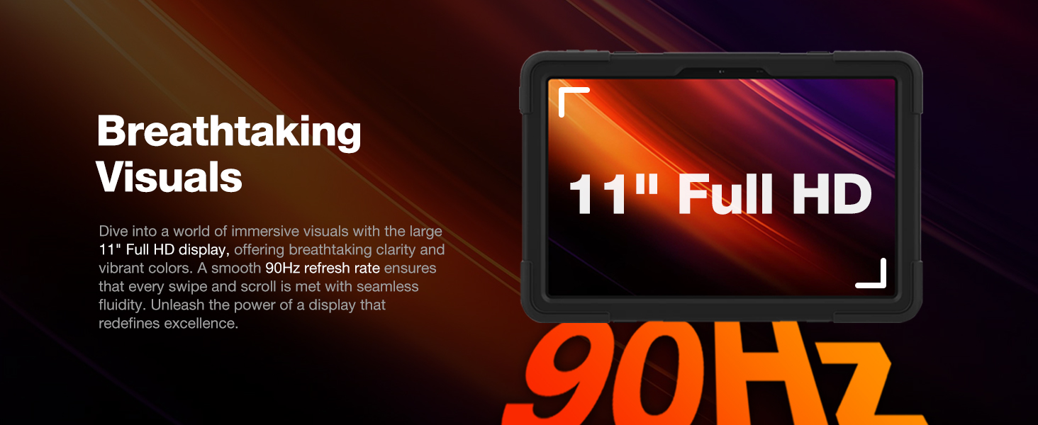 - – Enjoy stunning visuals on the 11-inch enhanced IPS display (1920×1200, 90Hz, and an 85%+ screen-to-body ratio). While Widevine L1 certification enables high-quality streaming with compatibility across popular platforms. Adaptive brightness ensures easy readability in bright lighting conditions. Built-in eye-protection mode reduces eye strain during extended use
