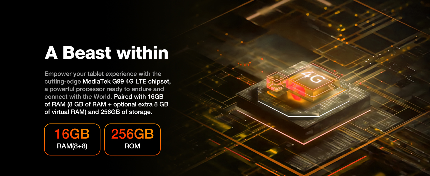 - – Built-in 16GB (8GB + 8GB) of RAM and 256GB of ROM for ultra-fast multitasking and smooth performance. With up to 2TB of expandable storage, you can have ample space to store apps, media, and files, ensuring you never run out of room. Whether you're on-site or traveling, it’s the ideal solution for those who require both speed and storage flexibility