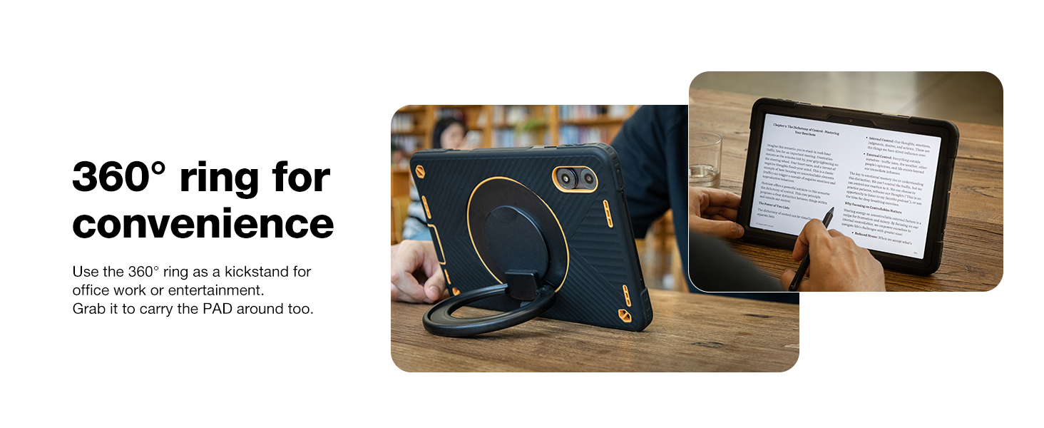 - – & – Removable protective cover safeguards this waterproof rugged tablet from drops, dust, and water, while allowing easy detachment for added portability. Its 360-degree swivel stand lets you effortlessly adjust the android tablet to any angle, providing the excellent hands-free viewing experience for work, entertainment, or video calls in any environment