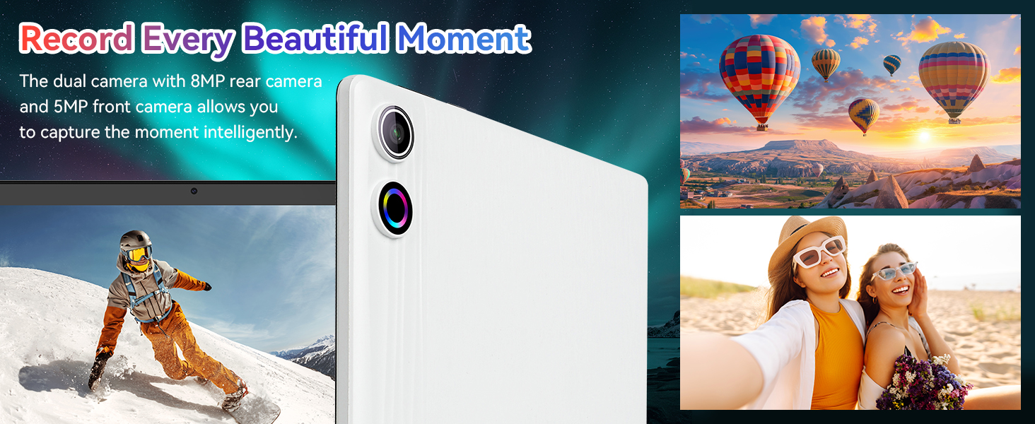 - 【Face Unlock & Dual Camera】Unlock instantly with Face ID, speed and security for seamless access to this 11 inch tablet. The 8MP rear camera captures crisp, detailed shots perfect for scanning, snapping landscapes, or casual photography. The 5MP front camera enhances selfes-take and video calls with Al-powered optimization. Whether you're mulitasking or connecting remotely, this 11 inch tablet android 14 balances convenience and clarily.