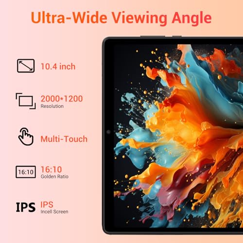 - 【10.4 inch + IPS Incell Screen】The AXETOP tablet features a 10.4-inch display equipped with an advanced IPS Incell screen technology, designed to enhance both performance and viewing comfort. The screen boasts a high resolution of 1920 x 1200 pixels, delivering crisp, detailed images and vivid colours that bring every visual to life. Whether you’re watching videos, browsing photos, or playing games, the clarity and depth of the display make for a truly immersive experience.