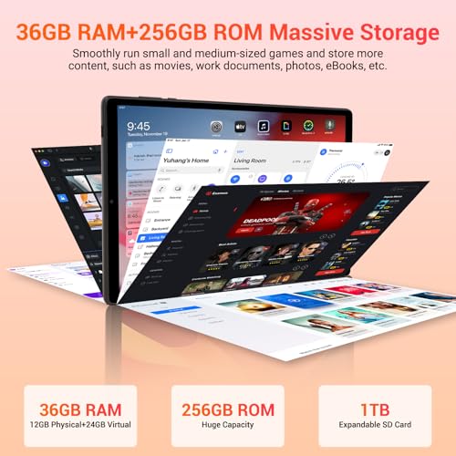 - 【36GB(12+24) RAM + 256GB ROM + 1TB Expandable】Elevate your digital experience with cutting-edge tablets featuring 12GB ultra-responsive RAM, intelligently expandable to 36GB through advanced memory fusion technology. This dynamic RAM optimization accelerates app launches, multitasking, and background processes, delivering a 60% performance boost for seamless gaming, streaming, and productivity. Alongside this impressive RAM, the tablet offers 256GB of internal storage and the ability to increase it up to 1TB via TF cards, providing ample space for all your photos, videos, music, and apps.