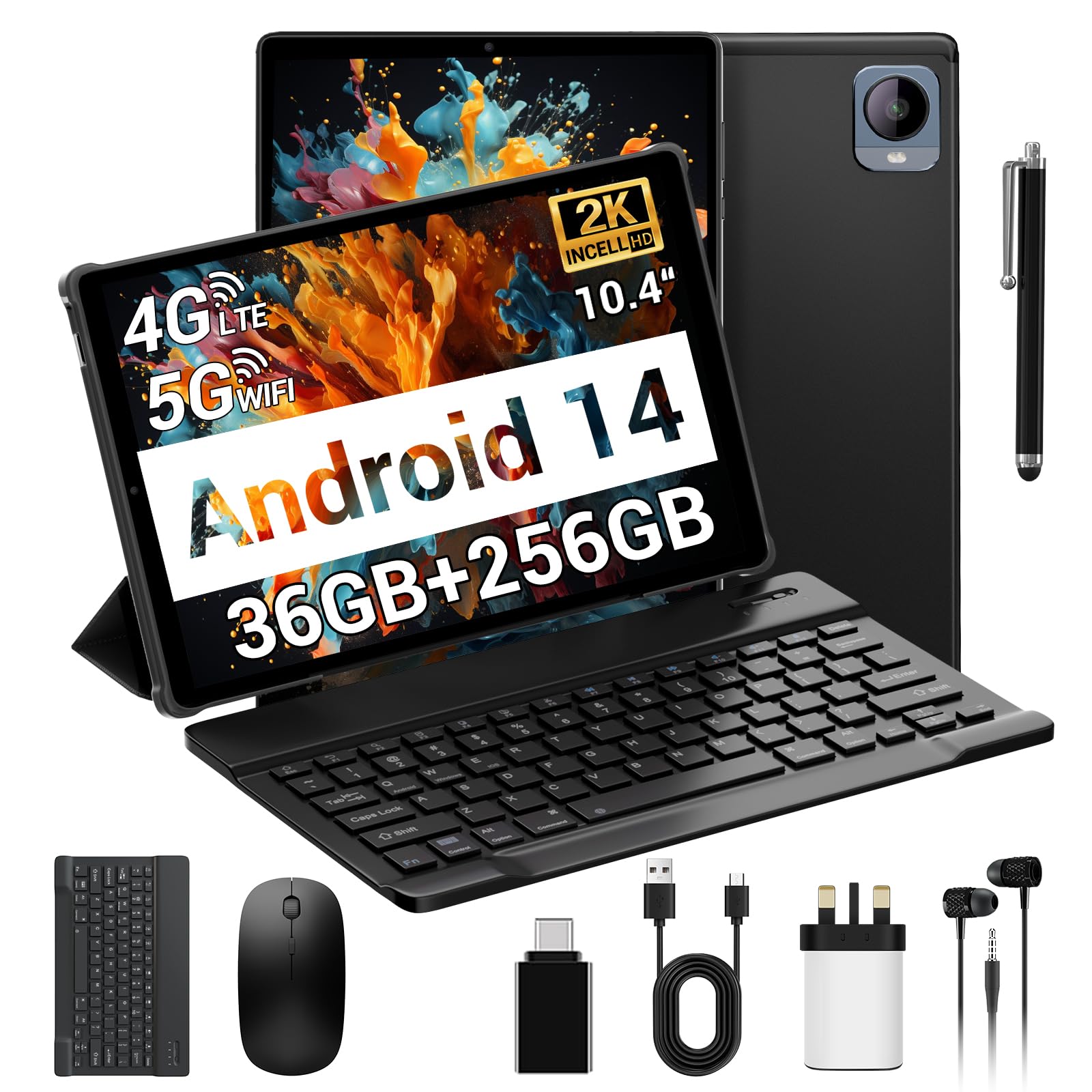 AXETOP 10.4 Inch Tablet with Sim Card Slot, Android 14, 36GB RAM+256GB ROM (1TB Expand), Octa-Core Processor,1920×1200,8000mAh, 13MP+8MP, BT5.0, GPS, OTG, Tablet with Keyboard丨Mouse丨Stylus – Black