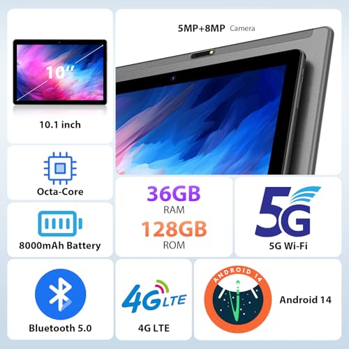 - 【Android 14 + GMS Certified】The AXETOP tablet features the Android 14 system and an octa-core processor. Compared to previous versions such as Android 12, 11, and 13, Android 14 offers faster performance, enhanced privacy and security, and a more personalised, user-friendly experience. With GMS certification, you can download and install any app, ensuring the tablet meets all your daily needs. This 10-inch 5G WiFi tablet is perfect for both entertainment and work, offering great convenience.