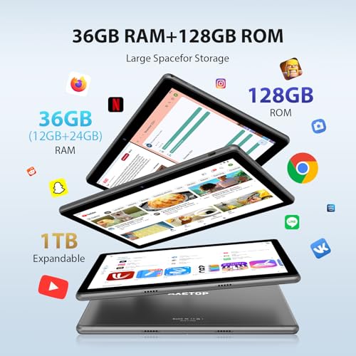 - 【4G LTE + 2.4G/5G WiFi + 36GB RAM + 128 GB ROM + 1 TB Expansion】The 4G LTE enables users to maintain a high-speed internet connection while on the move, while 2.4G/5G WiFi offers reliable connectivity in areas with WiFi coverage. The AXETOP tablet, with 36 GB of RAM and 128 GB of internal storage, provides an exceptionally smooth experience when switching between applications. Furthermore, the Micro SD card slot allows you to expand storage by up to 1 TB. Whether you're switching between apps quickly or running multiple tasks in the background, you’ll benefit from fast interface responsiveness and seamless operation, ensuring uninterrupted performance during entertainment, work, or study.