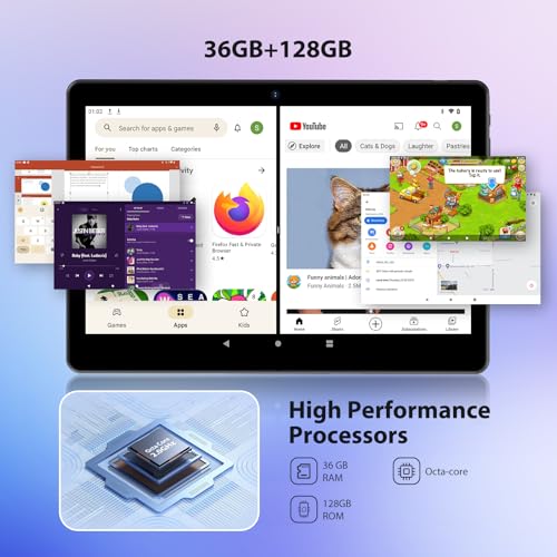 - 〖36 (12 + 24)GB RAM + 128GB ROM + 1TB Expansion〗The AXETOP tablet, thanks to its 36GB RAM and 128GB storage space, provides an extremely smooth application switching experience. In addition, the Micro SD card allows you to expand the storage space up to 1TB. Whether you are quickly switching between different applications or running multiple tasks in the background, you can maintain fast interface response and continuity of operations, ensuring users' smooth and uninterrupted performance during entertainment, work or study.