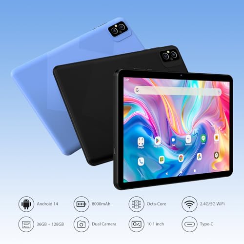 - 〖Powerful Android 14 & WideVine L1〗The 10 inch tablet is equipped with the powerful Android 14 system and an octa-core processor, which has passed Google GMS certification and WideVine L1 certification with support for YouTube, Netflix, Instagram and TikTok to protect your privacy and security when browsing the web and watching FHD videos. Millions of applications can be accessed via the Play Store. This 10-inch 5G WiFi tablet will bring great convenience to your entertainment and work.