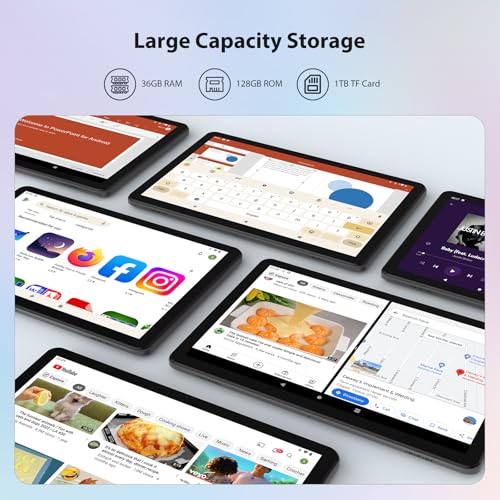 - 〖36 (12 + 24) GB RAM + 128 GB ROM + 1 TB Expansion〗This 10 inch tablet, thanks to its 36 GB RAM and 128 GB storage space, provides an extremely smooth application switching experience. In addition, the Micro SD card allows you to expand the storage space up to 1 TB. Whether you are quickly switching between different applications or running multiple tasks in the background, you can maintain fast interface response and continuity of operations, ensuring users smooth and uninterrupted performance during entertainment, work or study.