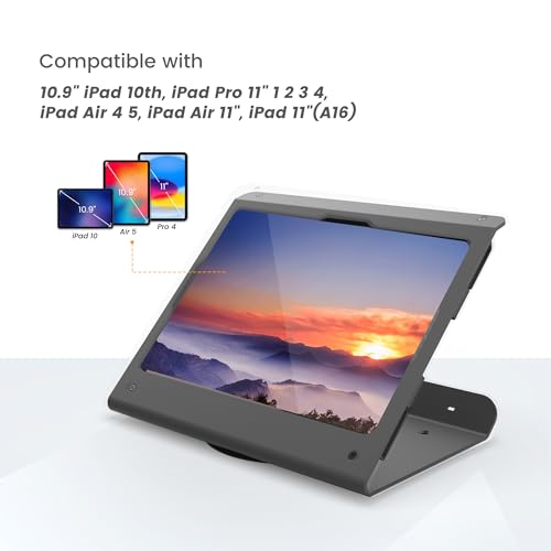 Beelta Retail Tablet Stand Compatible with iPad 10 gen 10.9 inch, iPad 11″(A16), air 4 5 10.9″, Pro 11″ 1st 2nd 3rd 4th gen., Air 11″, Anti Theft Kiosk POS Tablet Stand Holder, 360° Swivel Base