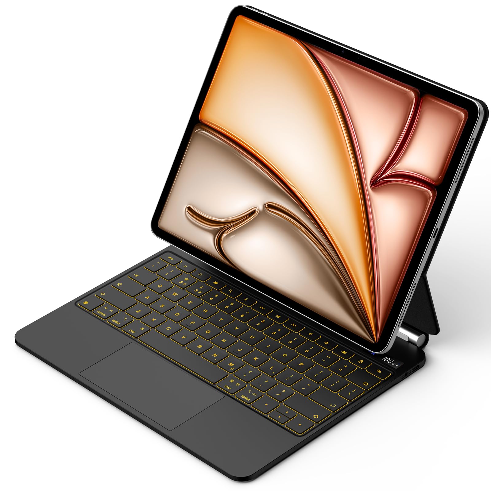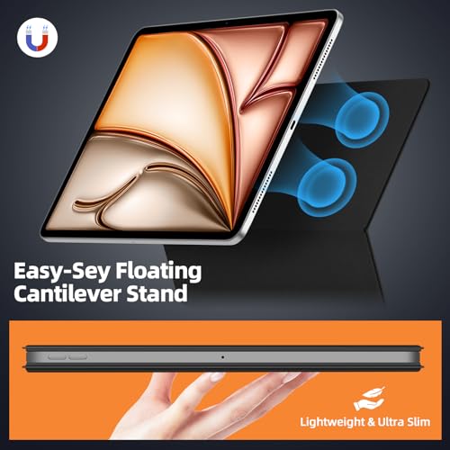 - Easy Install Self-Supporting Stand: Adoption of magnetic levitation design, the strong magnetic attraction holds your iPad securely. Simply open the case to give you the perfect angle to turn your iPad air 13 into a laptop in a second. You can also wake or hibernate your iPad by opening or closing the keyboard sleeve – perfect for travelling, business and school.