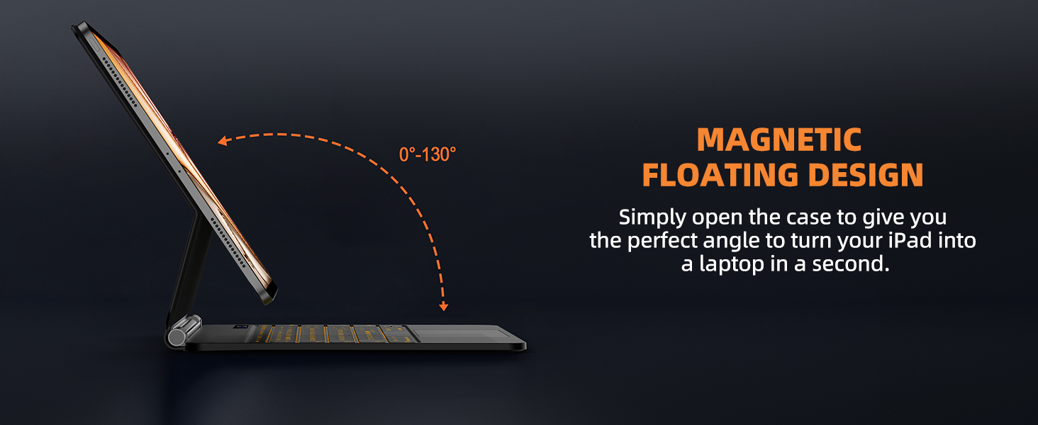 - Easy Install Self-Supporting Stand: Adoption of magnetic levitation design, the strong magnetic attraction holds your iPad securely. Simply open the case to give you the perfect angle to turn your iPad air 13 into a laptop in a second. You can also wake or hibernate your iPad by opening or closing the keyboard sleeve – perfect for travelling, business and school.