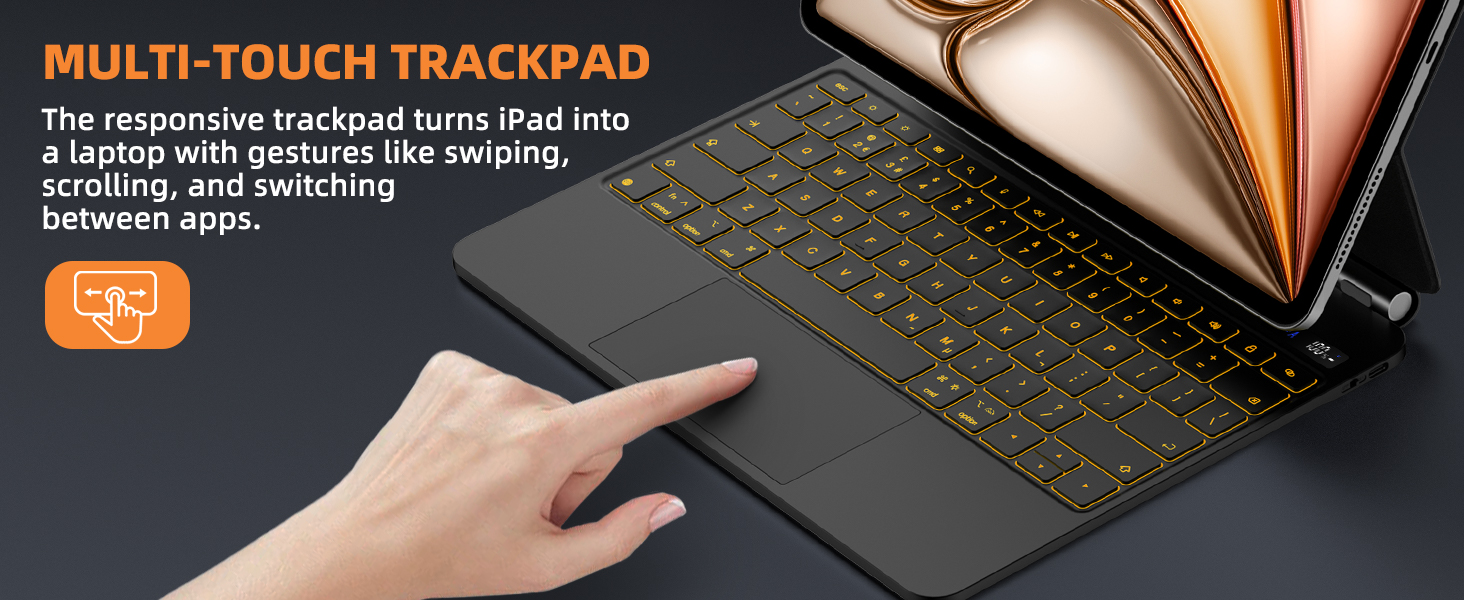 - Precise Trackpad: Bettdow for iPad air 13 keyboard case is upgraded to click-anywhere touchpad, the entire area can be clicked and pressed. Navigate your iPad air 13 in a whole new way with a click-anywhere touchpad, scroll, swipe, click & press and more. The responsive and reliable trackpad that lets you use the entire surface to work.