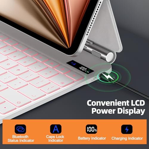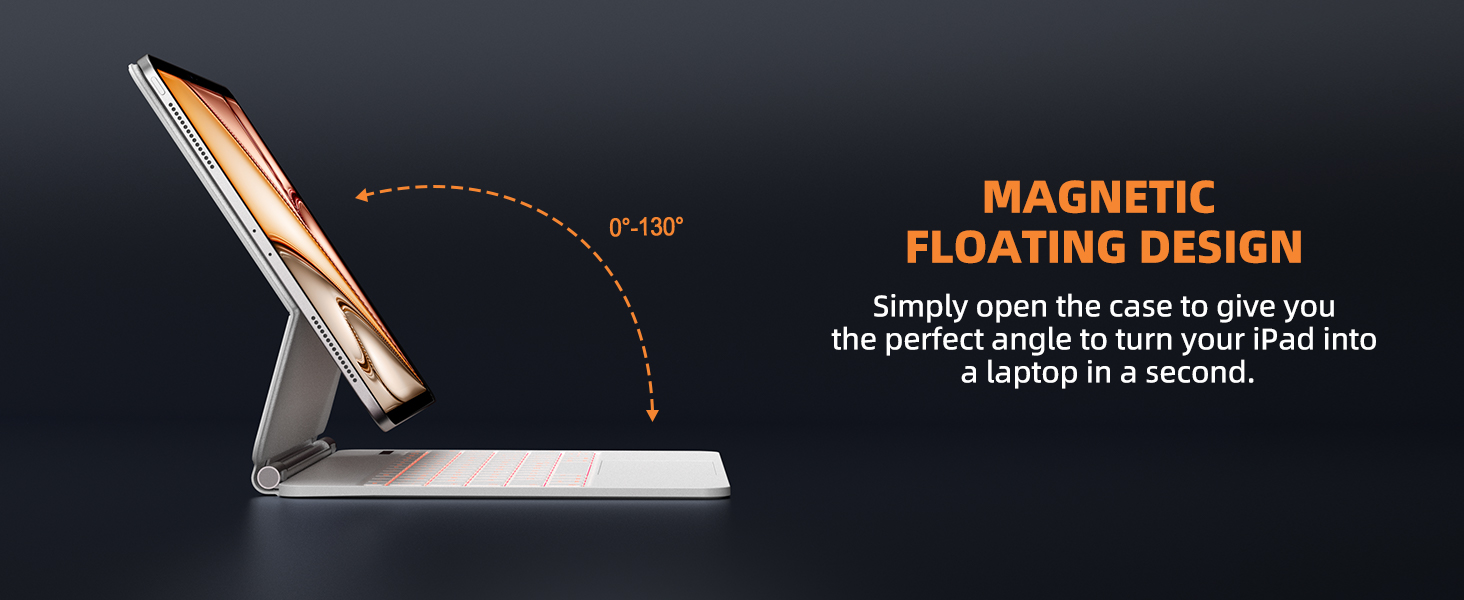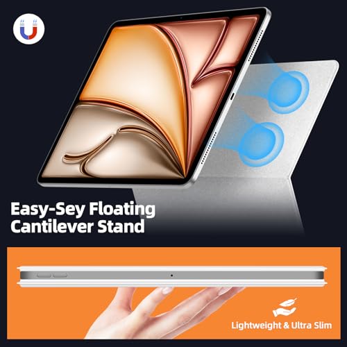 - Easy Install Self-Supporting Stand: Adoption of magnetic levitation design, the strong magnetic attraction holds your iPad securely. Simply open the case to give you the perfect angle to turn your iPad air 13 into a laptop in a second. You can also wake or hibernate your iPad by opening or closing the keyboard sleeve – perfect for travelling, business and school.