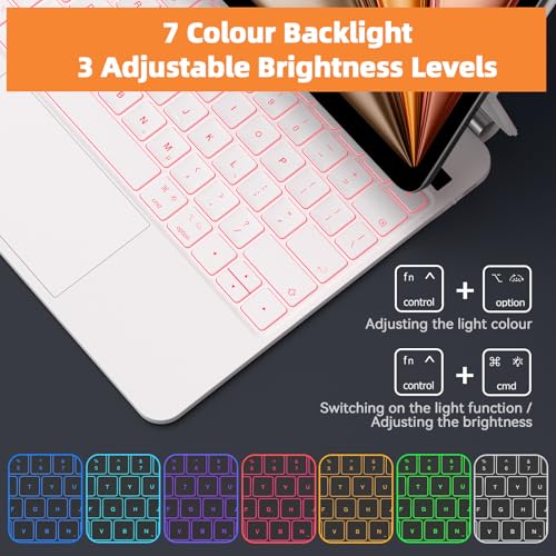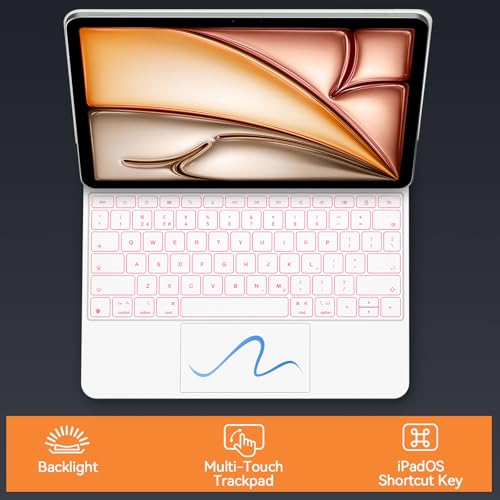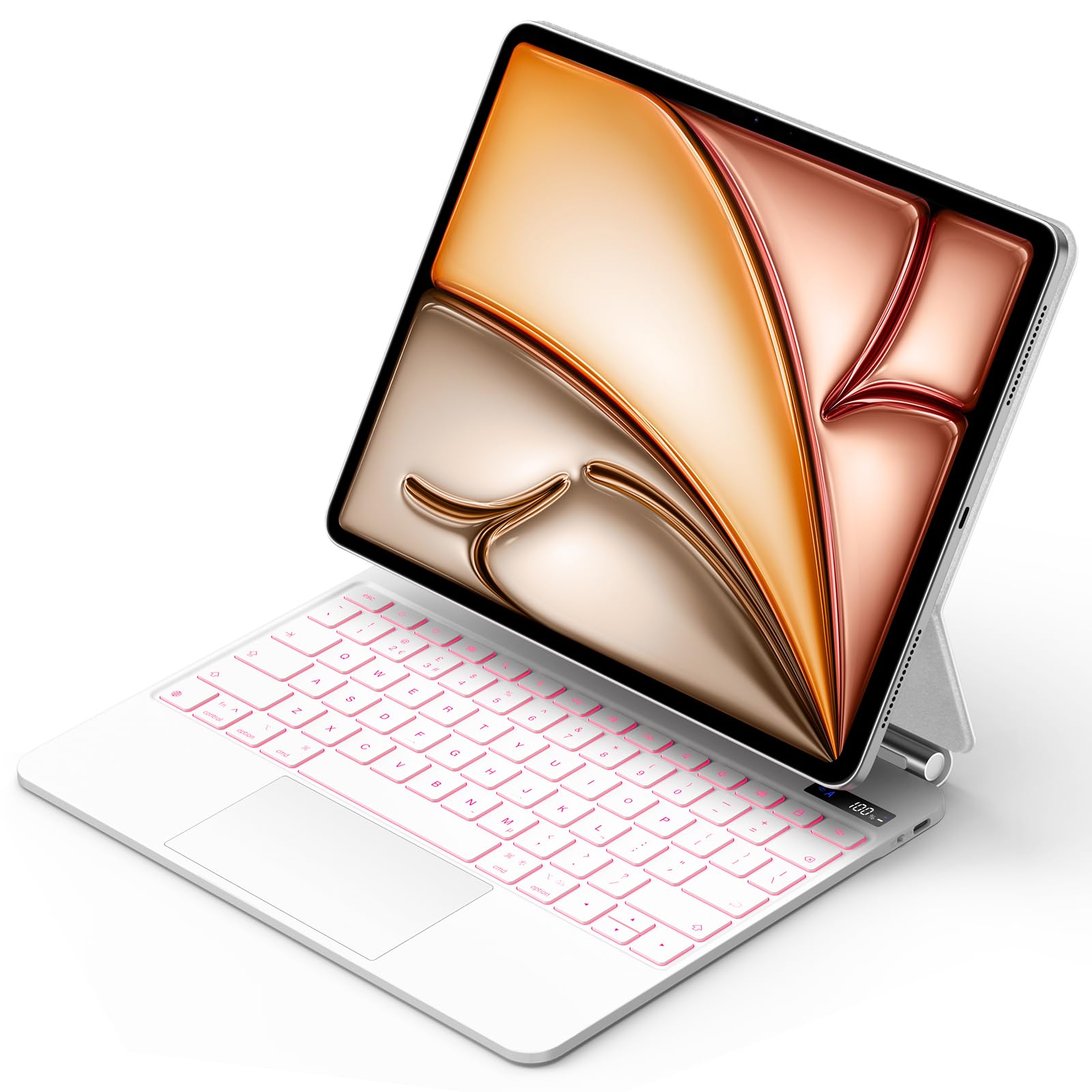 Bettdow for iPad Air 13 Inch M2 2024/M3 2025 Magnetic Keyboard case, UK Layout Floating Cantilever Stand, Trackpad with Backlit Keyboard for iPad Pro 12.9 6th/5th/4th/3rd Gen, Air 13″ 2024/2025, White