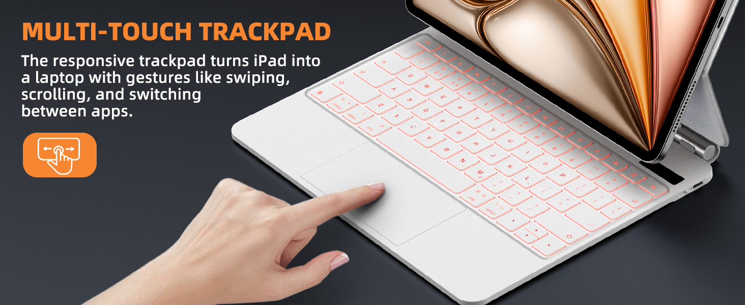 - Precise Trackpad: Bettdow for iPad air 13 keyboard case is upgraded to click-anywhere touchpad, the entire area can be clicked and pressed. Navigate your iPad air 13 in a whole new way with a click-anywhere touchpad, scroll, swipe, click & press and more. The responsive and reliable trackpad that lets you use the entire surface to work.