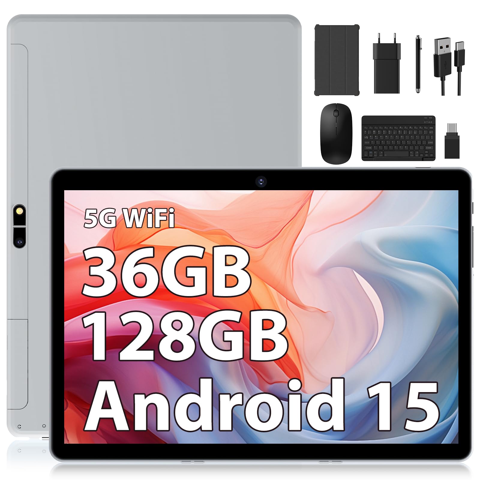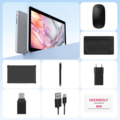 DEEMWOLF Android 15 tablet 10 Inch 36GB RAM+128GB ROM (TF 1TB),Android Tablets 5G WiFi,BT5.0,8000mAh,with Keyboard+Mouse(Grey)