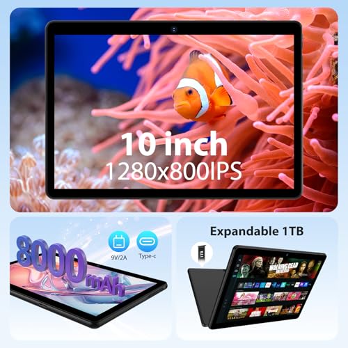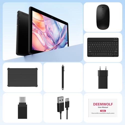 DEEMWOLF Android 15 tablet 10 Inch 36GB RAM+128GB ROM (TF 1TB),Android Tablets 5G WiFi,BT5.0,8000mAh,with Keyboard+Mouse(Black)