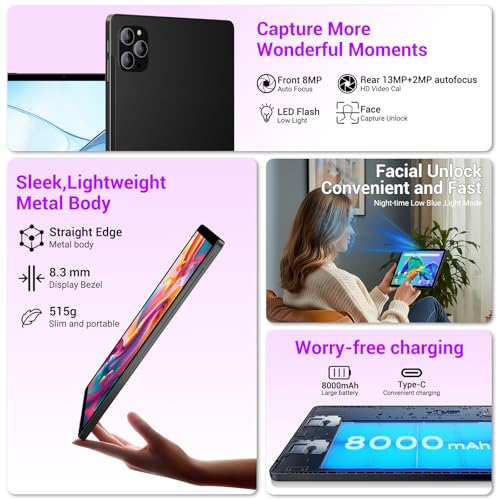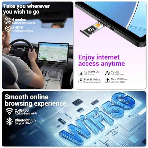 - 5G WIFI&4G LTE&8000mAh battery The 4G LTE tablet is equipped with a SIM card slot, supports 2G/3G/4G networks, and is paired with 5G dual band WiFi to ensure a smooth and seamless internet experience. The 8000mAh ultra large capacity battery, combined with AI intelligent power management and power-saving mode, can automatically detect and filter background power consumption apps, keeping the tablet in a healthy state and extending the battery life.