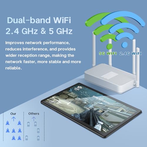 - Enhanced 5G+2.4G WiFi Version: The D3 tablet uses an enhanced dual-band network acceleration engine. Compared to other tablets in its class, the D3 tablet improves data forwarding speed by 80% from hardware quickly. Not only it improves network performance, reduces interference, but also provides wider reception range for faster, more stable, and more reliable networks. It also gives you a smooth experience in web browsing, video playback and video calling.