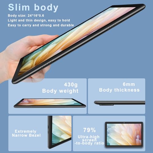 - Thin and Light 10.1-IN Tablet: D3 tablet is lighter 18% than other tablets on the market, with a bare weight of the tablet 430g. 6 mm thickness makes the whole tablet look light and nimble, so you can easily put the tablet into your backpack to give you some fun for outdoor activities or short trips.