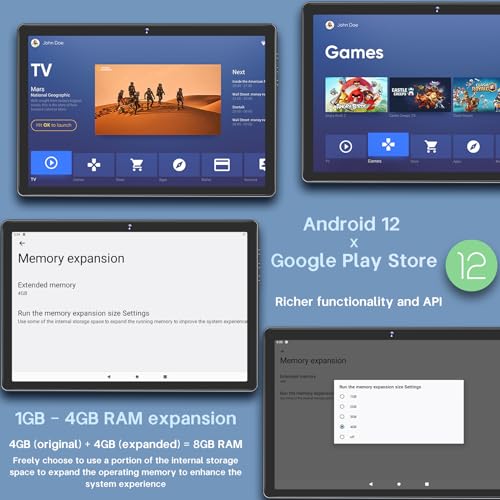 - Expandable 8GB RAM and 1TB ROM: D3 tablet has original 4GB RAM and 64GB ROM. with support for up to 1TB storage expansion, you have more space to store your beloved files, photos and videos. With more freedom to choose to expand the internal storage by 1GB – 4GB RAM to enhance the system running experience, you can also have up to 8GB RAM totally with 4GB (original) + 4GB (extended) to double the tablet's running speed.