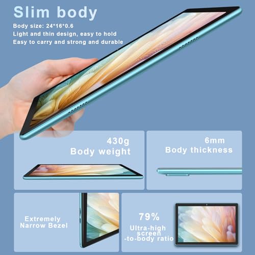 - 4.Thin and Light 10.1-IN Tablet: D3 tablet is lighter 18% than other tablets on the market, with a bare weight of the tablet 430g. 6 mm thickness makes the whole tablet look light and nimble, so you can easily put the tablet into your backpack to give you some fun for outdoor activities or short trips.