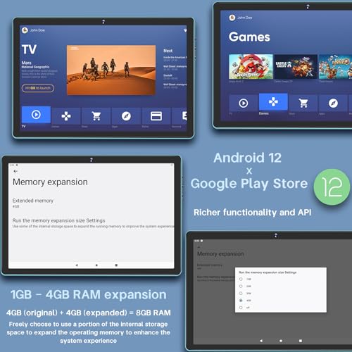 - 3. Expandable 8GB RAM and 1TB ROM: D3 tablet has original 4GB RAM and 64GB ROM. with support for up to 1TB storage expansion, you have more space to store your beloved files, photos and videos. With more freedom to choose to expand the internal storage by 1GB – 4GB RAM to enhance the system running experience, you can also have up to 8GB RAM totally with 4GB (original) + 4GB (extended) to double the tablet's running speed.