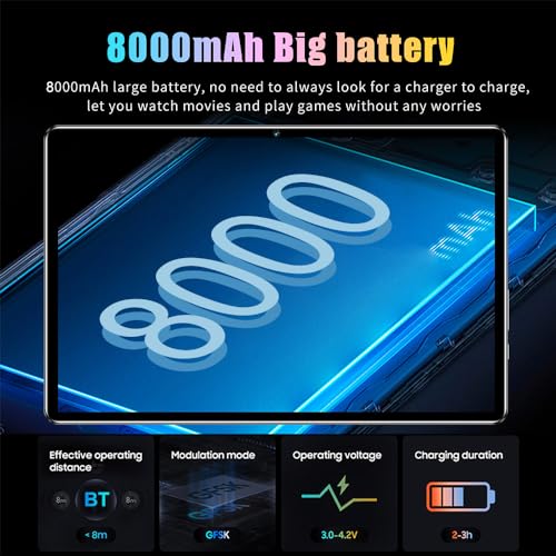 - Long Battery Life: The 8000mAh high-capacity battery provides extended usage time, so you no longer have to worry about the tablet running out of power.