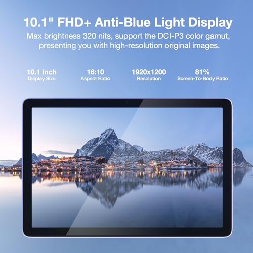 - 【10.1" FHD+ screen & TÜV certified】The android tablet has a 10.1-inch FHD-IPS screen with a resolution of 1920 x 1200. It has passed the TÜV eye protection certification, which reduces eye damage caused by blue light and can be used by children with confidence. In addition, the T10 Pro also supports DCI-P3 color range for rich and vibrant colors in every experience. It offers the most immersive experience.