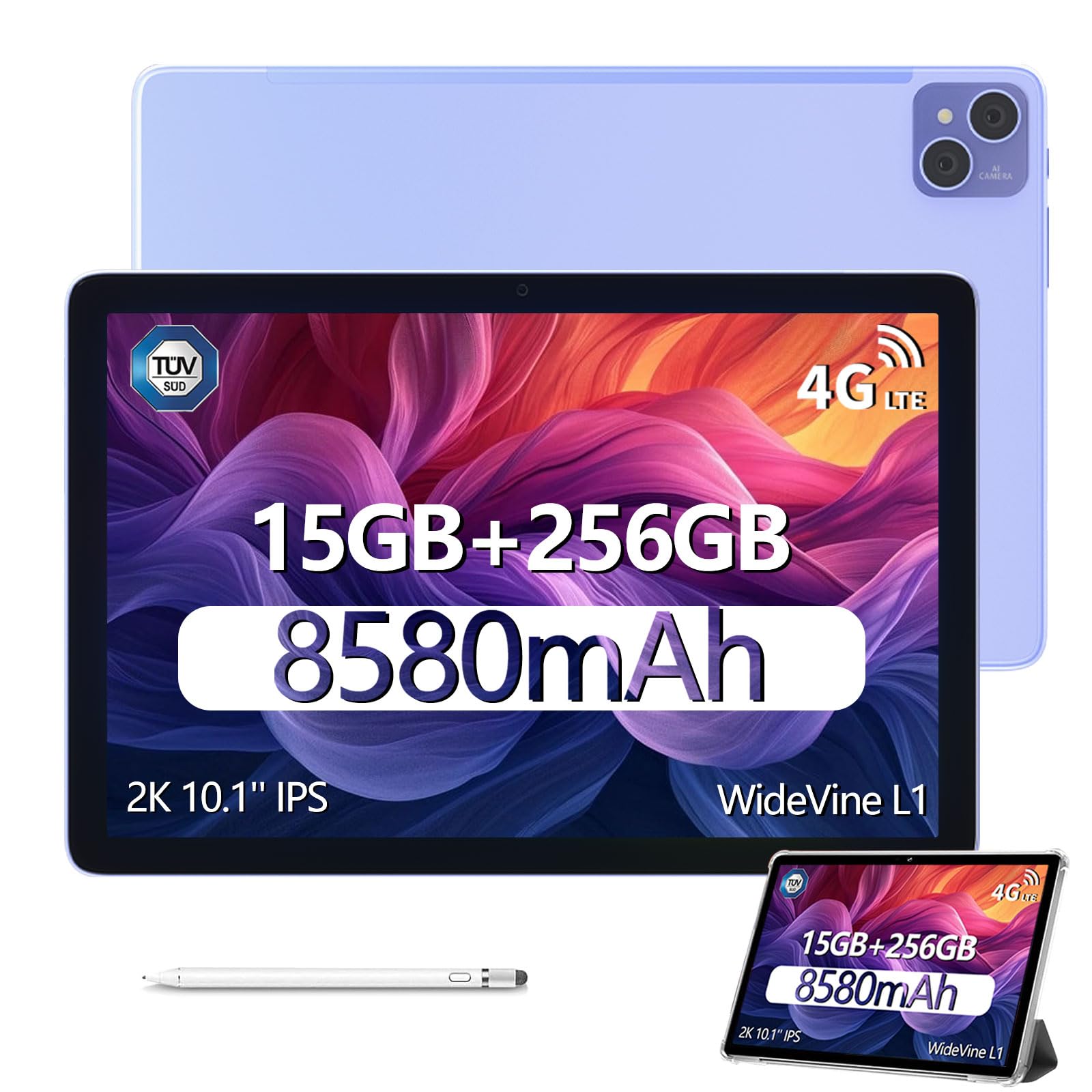 DOOGEE T10 Pro Tablet 10.1 Inch, 15GB RAM + 256GB ROM (1TB TF), T606, Dual 4G LTE Android Tablets, 8580mAh Battery/18W, 13MP+8MP, Widevine L1 /3.5mm -Jack/WiFi 6 /BT 5.0 / TÜV/GPS Tablet, Purple