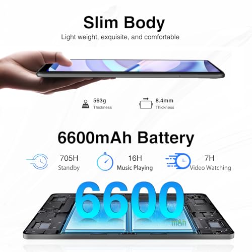 - 【6600mAh Large Battery & Widevine L1 Support】DOOGEE T10S Tablet PC Android is equipped with a 6600mAh battery, which has a longer battery life and can provide up to 705 hours of standby time or 14 hours of music playback to meet your daily use needs. The tablet supports 5V/2A charging power and Google Widevine L1, equipped with dual stereo speakers with independent intelligent PA system, not only can you hear more realistic sound, but also watch 1080P and above high-definition video.