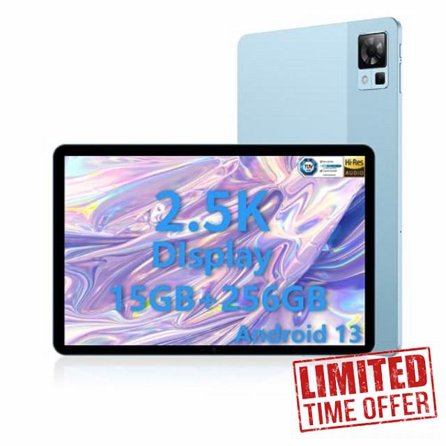 DOOGEE T30 Pro 11 Inch Tablet 2.5K, 15GB+256GB (TF 2TB), 20MP/8MP Camera, Android 13, 4G-LTE, 2.4GHz&5GHz Wi-Fi, Face Unlock & Bluetooth 5.2, 8580mAh 33W Fast Charging, Blue