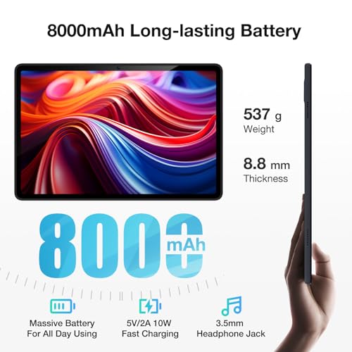 - 【11-inch Screen + 8000 mAh + Stereo Speakers】The T30E Android 14 Tablet boasts an 11-inch IPS full-colour HD display, delivering vibrant colours and a responsive touch experience. Its built-in 8000 mAh high-capacity battery, teamed with an efficient operating system and energy-saving features, ensures long-lasting performance.Equipped with dual stereo speakers, the T30E offers bright, clear sound, providing an immersive 3D surround audio experience.