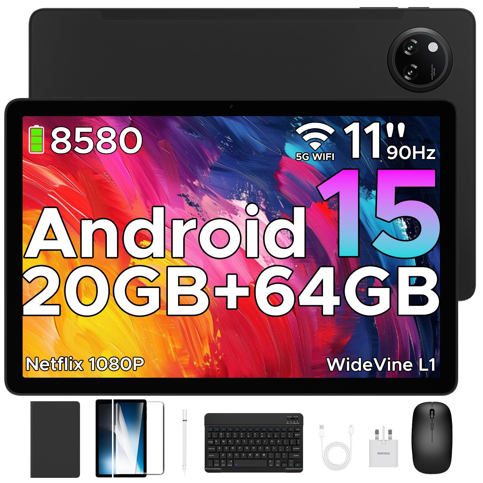 DOOGEE TAB A9+ 2025 Newest 11 Inch Android 15 Tablet, 8580mAh Tablet With Keyboard, T7200 Octa Core Android Tablets, 20GB + 64GB/2TB Tablets With Pen, 13+5MP, 2 Speakers + Widevine L1, Mouse & Case