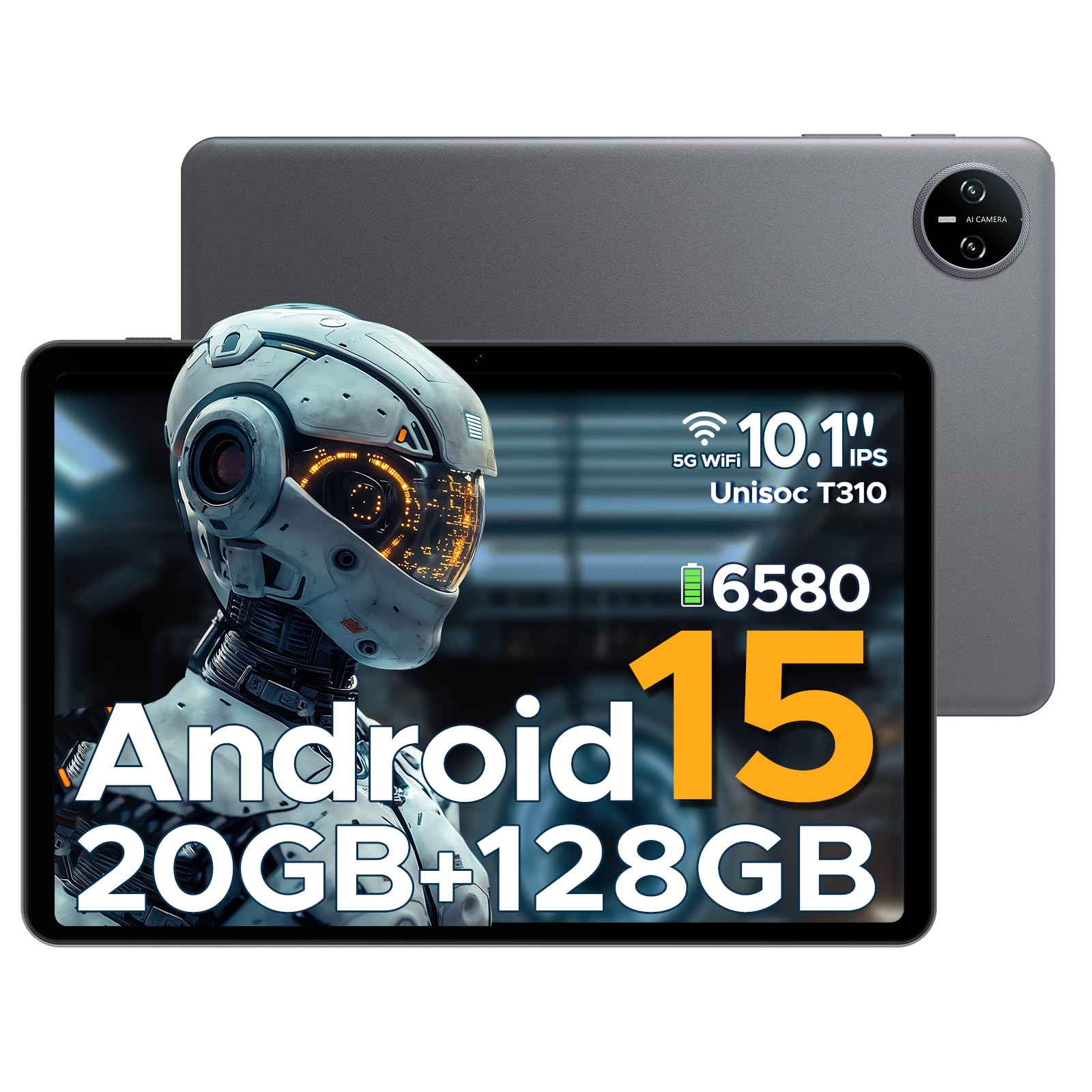 DOOGEE Tab A9 Pro Android 15 Tablet 10 Inch(2025), Unisoc T310 Android Tablets 20GB RAM 128GB ROM(TF 2TB), 6580 mAh Battery, 8MP AI Camera|Dual Speaker|5G WiFi|GMS|Bluetooth|Face ID|3.5mm Jack-Gray