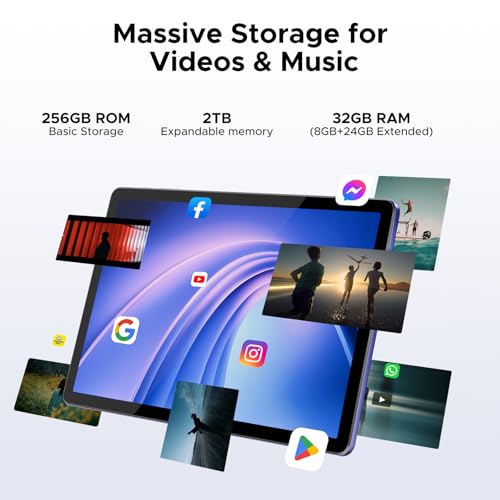 - 【Unstoppable Performance】Expand to 32GB RAM + 256GB ROM Built-In Say goodbye to lag and limits. With cutting-edge RAM expansion technology, your tablet’s 8GB base memory can instantly expand to 32GB, delivering blazing-fast multitasking, seamless gaming, and effortless app switching. Paired with a generous 256GB of internal storage, you’ll have more than enough space for your favourite apps, 4K videos, photos, and work files — no need to constantly delete or transfer data. Perfect for both productivity and play, wherever you go.