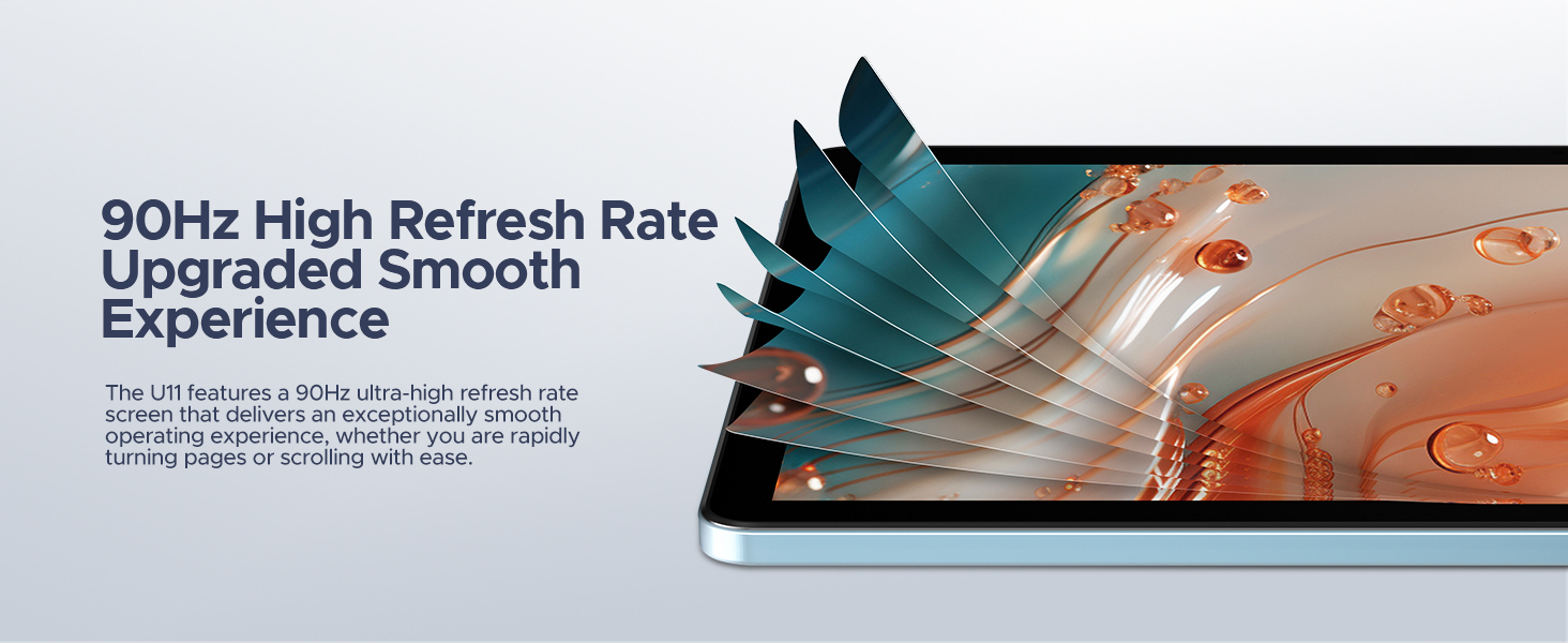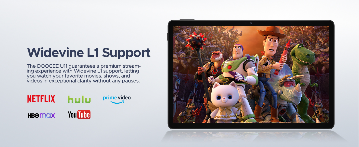 - 【11 inch Tablet+ 90HZ Display + Widevine L1 + Netflix】 DOOGEE U11 11 inch tablet features a 11-inch HD IPS screen Full HD 90Hz display, delivering a cinema-grade viewing experience. Additionally, the U11 is Widevine L1 certified, allowing you to watch the latest shows in 1080P resolution on Netflix(True 1080p resolution), YouTube, HBO, or Amazon Prime Video, whether you're binge-watching or a loyal fan. The 90Hz refresh rate ensures smooth and seamless performance, keeping the tablet in sync with your thoughts and enhancing your quality of life.